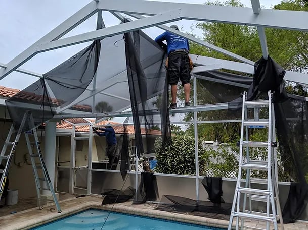 Screen repairs and replacements are important to maintain the integrity of your screen enclosure and to protect your outdoor space from insects and other outdoor elements. Here is a description for both panel screen repairs and full re-screens: